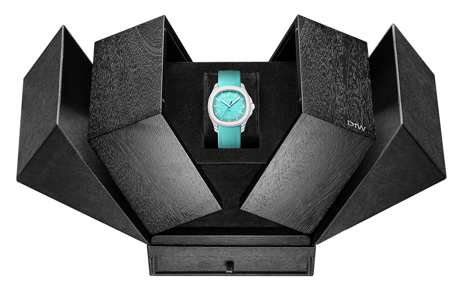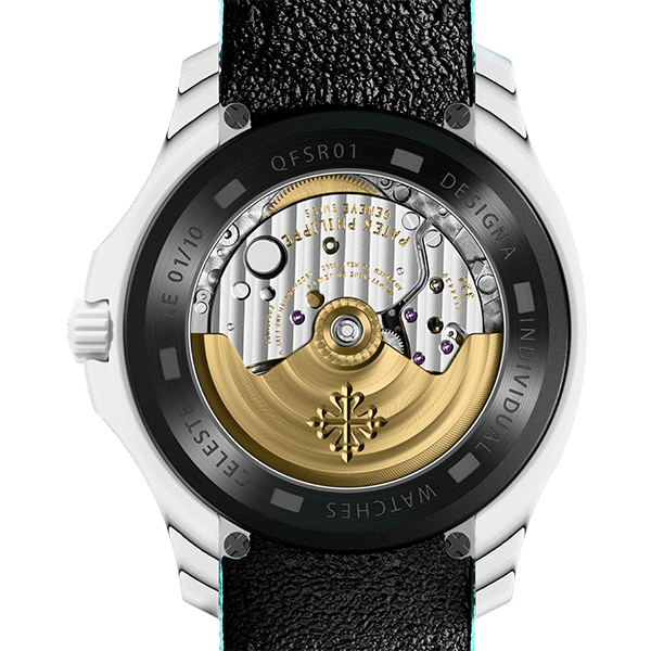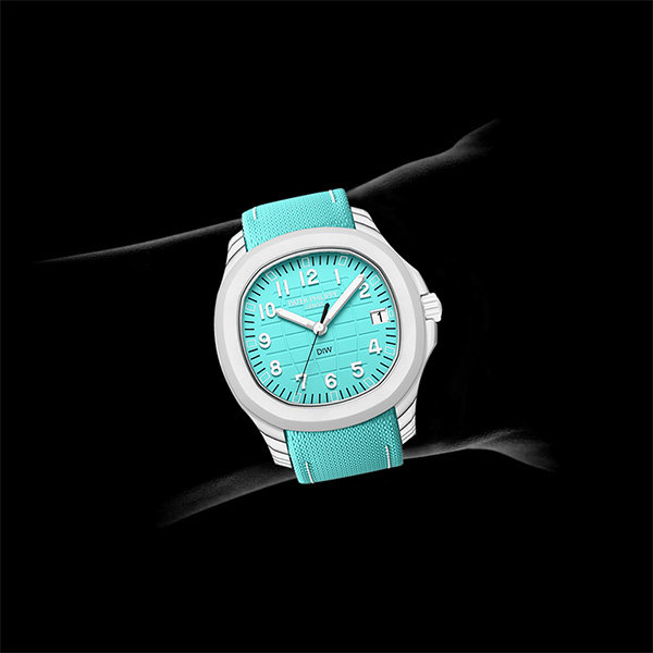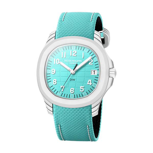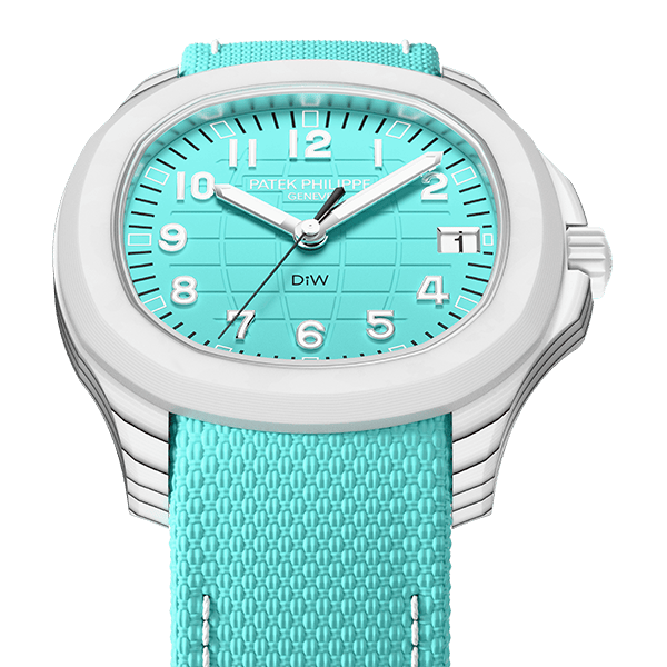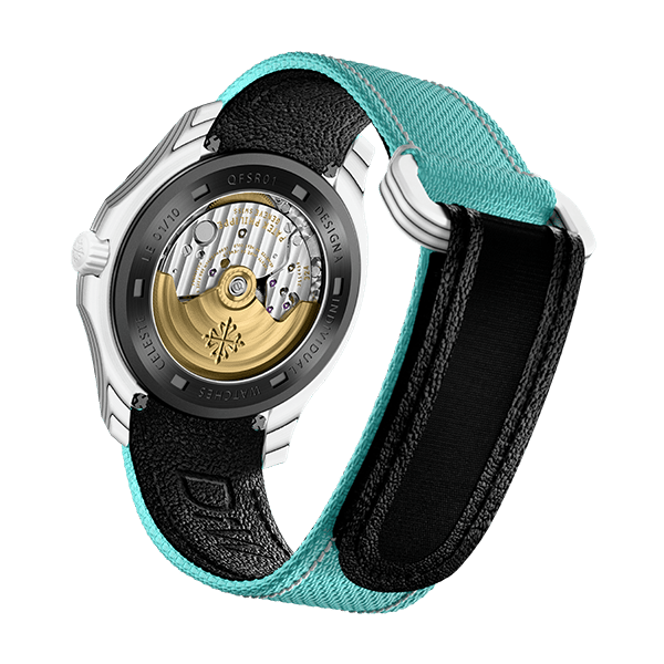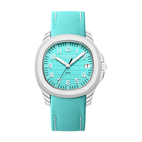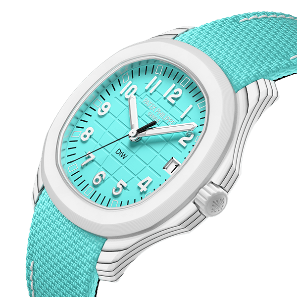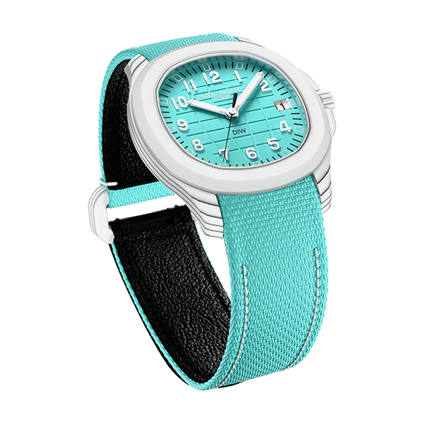 The Aquanaut Celeste is a study in tonal harmony and light. Crafted in high-end white quartz fiber, its case reflects light with a soft, diffused clarity. The celeste dial and strap extend this palette, creating a seamless composition where color and material exist in perfect balance.