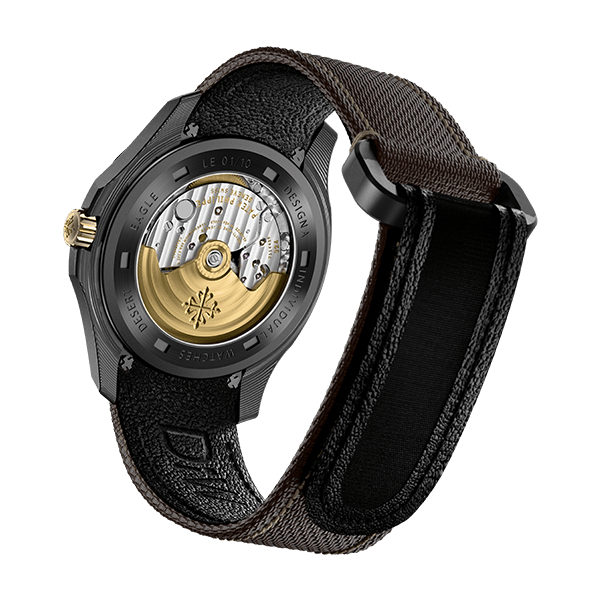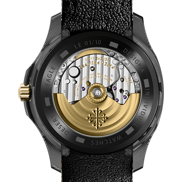The Aquanaut Desert Eagle is a composition shaped by strength and environment. Crafted in high-end carbon fiber, its case reveals a layered structure where light is absorbed, creating depth and intensity. Inspired by desert landscapes, the piece reflects resilience, precision, and controlled power in its purest form.