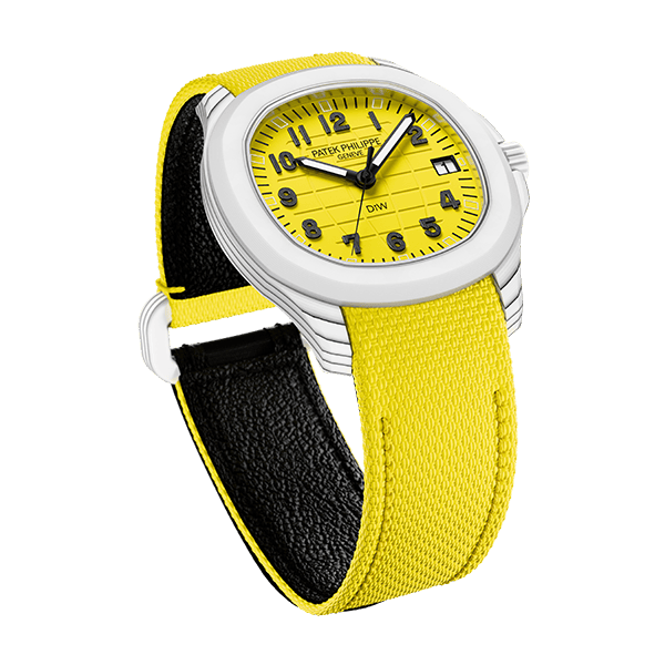 The Aquanaut Lemon is a composition of light and energy translated into form. Crafted in high-end white quartz fiber, its case reflects light with a soft, crystalline clarity, while the yellow dial and strap introduce a vibrant, focused contrast. A piece defined by brightness, precision, and controlled intensity.