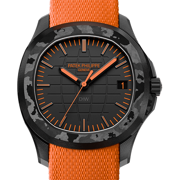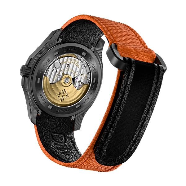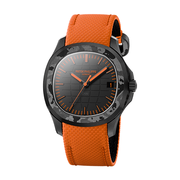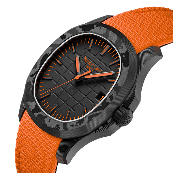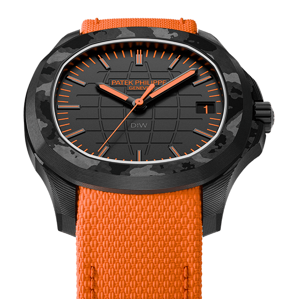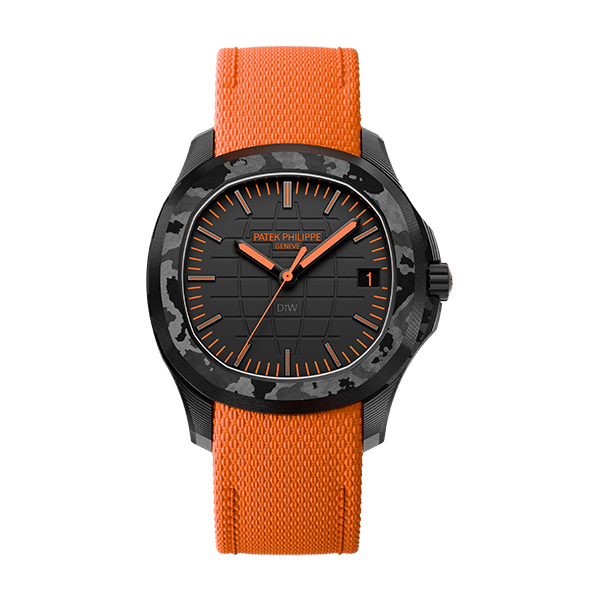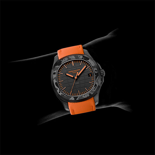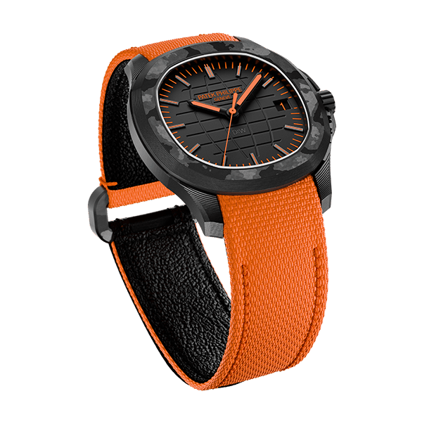 The Aquanaut Orange is full of depth and controlled intensity. Crafted in high-end carbon fiber, its case absorbs light, creating a dark, structured foundation. The black dial, accented with orange markers and paired with an orange strap, introduces a precise, high-visibility contrast. A piece defined by clarity, performance, and focused energy.