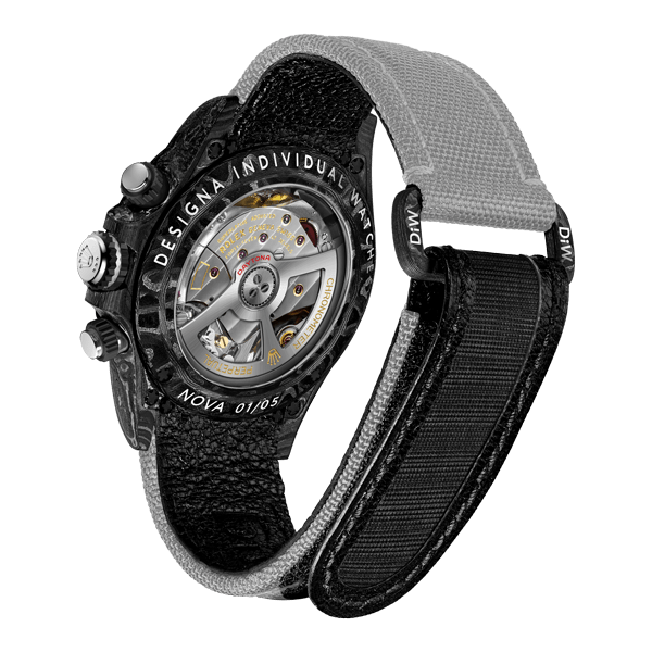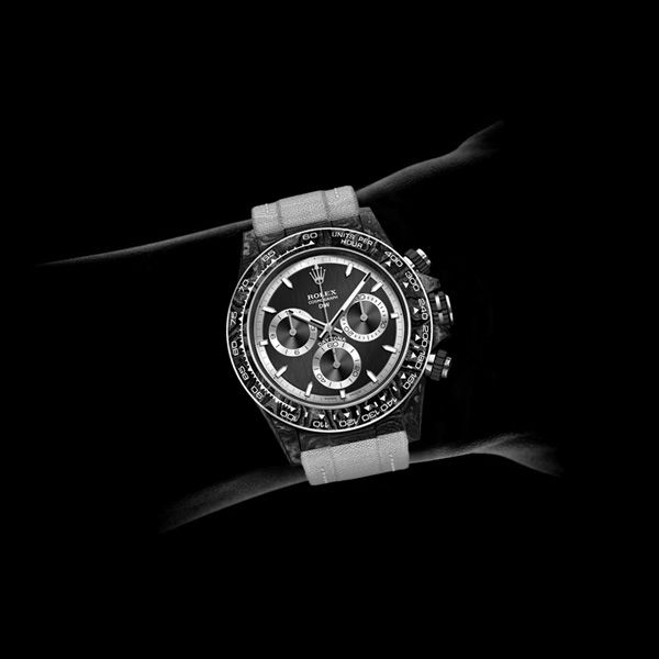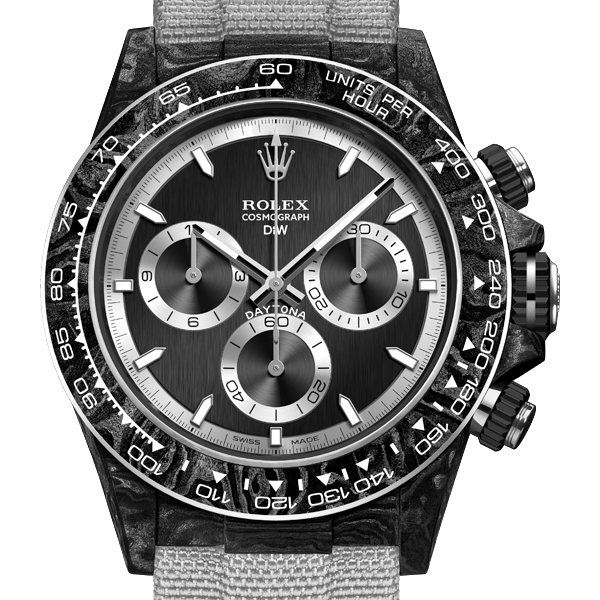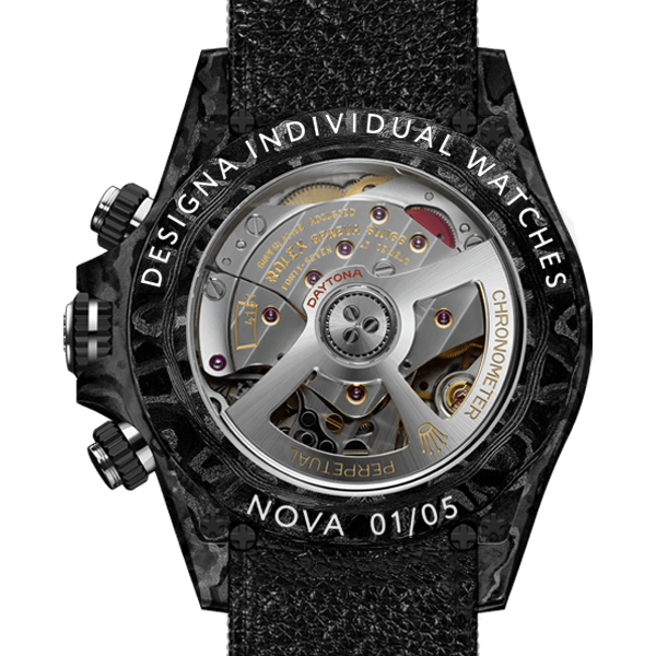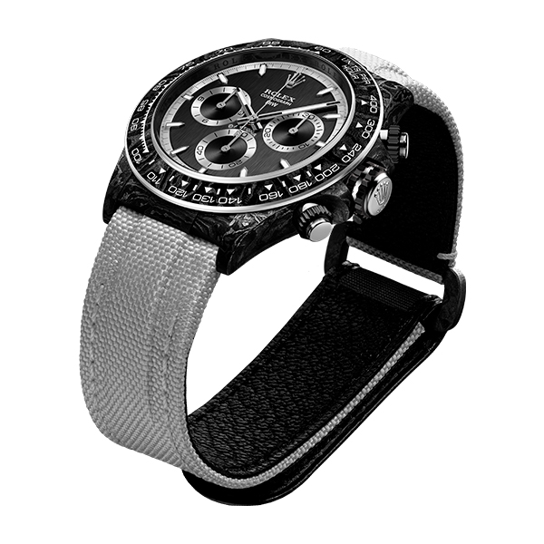 The Daytona Nova represents the fusion of light and performance in modern watchmaking. Crafted entirely in carbon fiber, its structure radiates both strength and luminosity. Each layer is carefully aligned to create a subtle play of texture and depth, evoking the brilliance of a star igniting in motion.